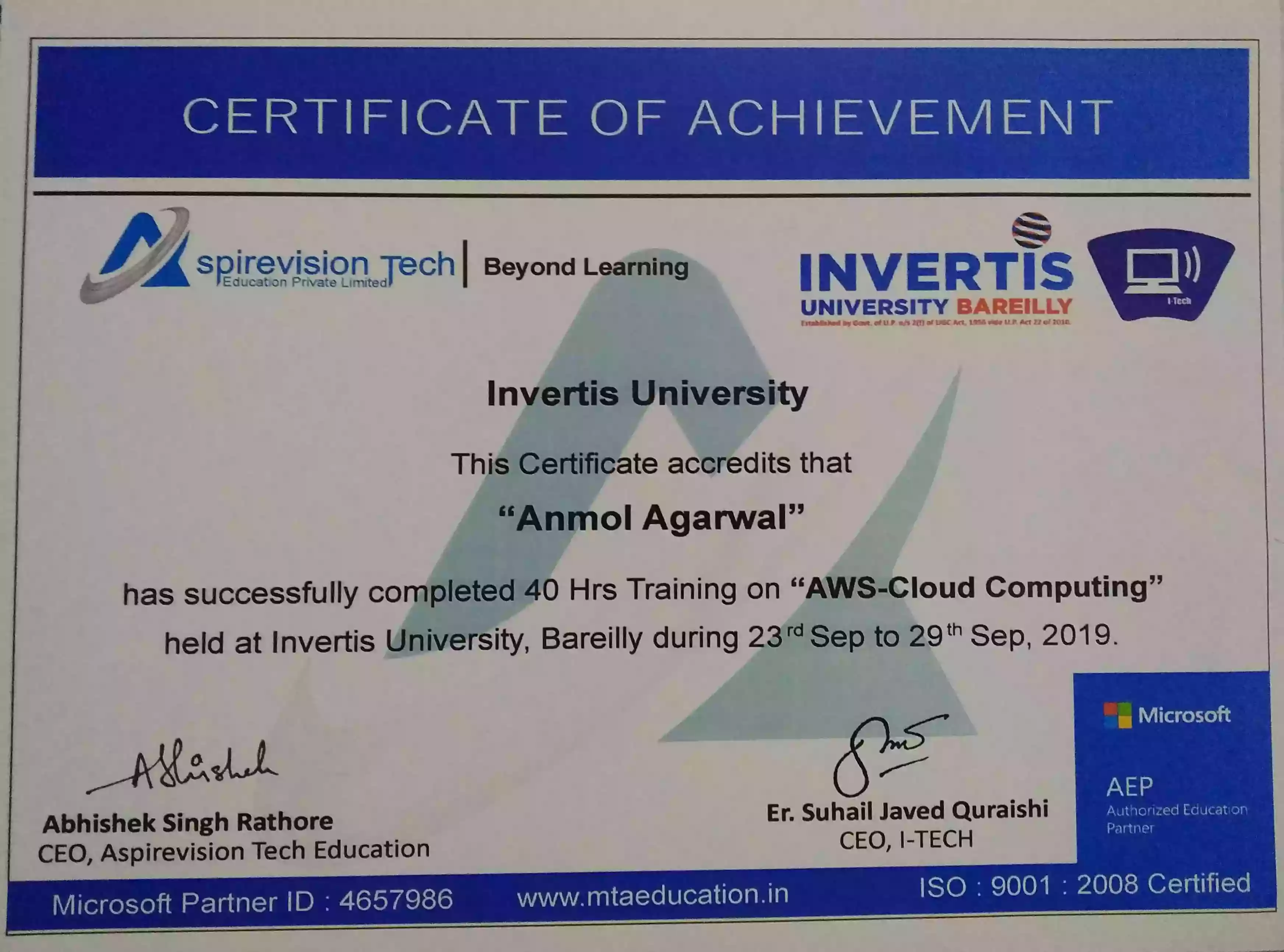 AWS - Cloud Computing - Aspirevision Tech Edu. Pvt. Ltd.