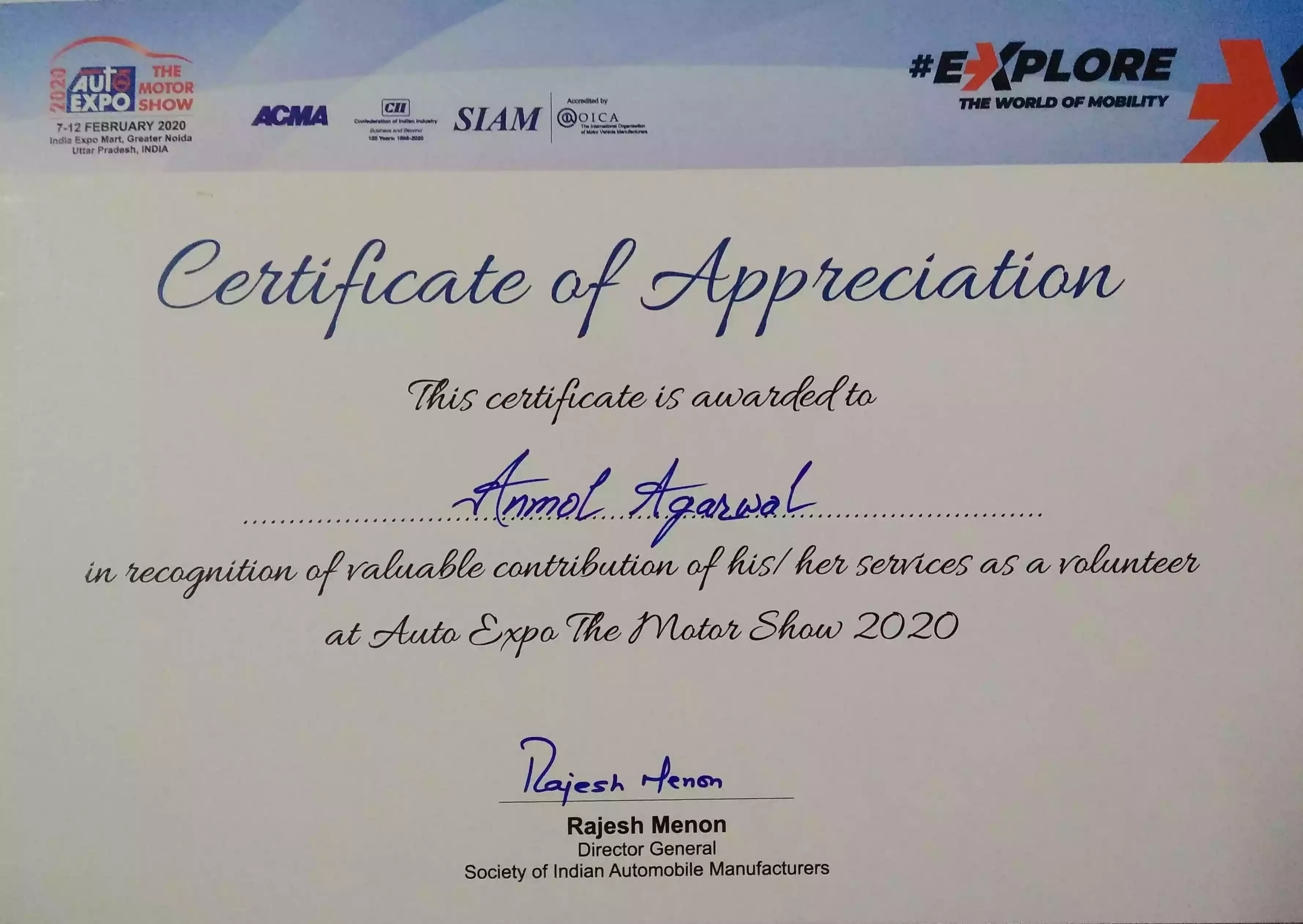View CertificatesStudent Volunteer at Auto Expo 2020 under SIAM