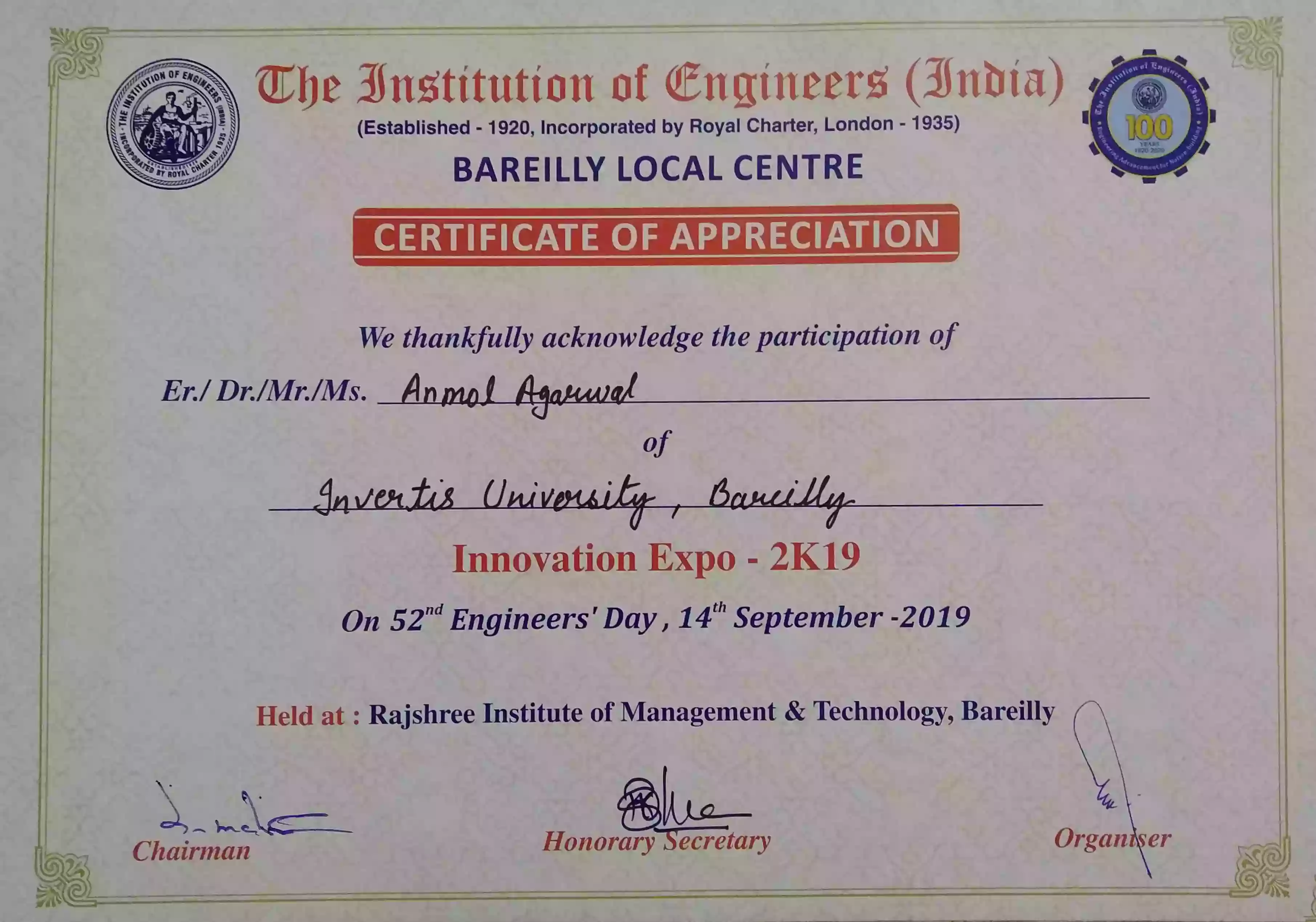 Represented Invertis at Innovation Expo - 2k19, Rajshree Institute of Management & Technology, Bareilly