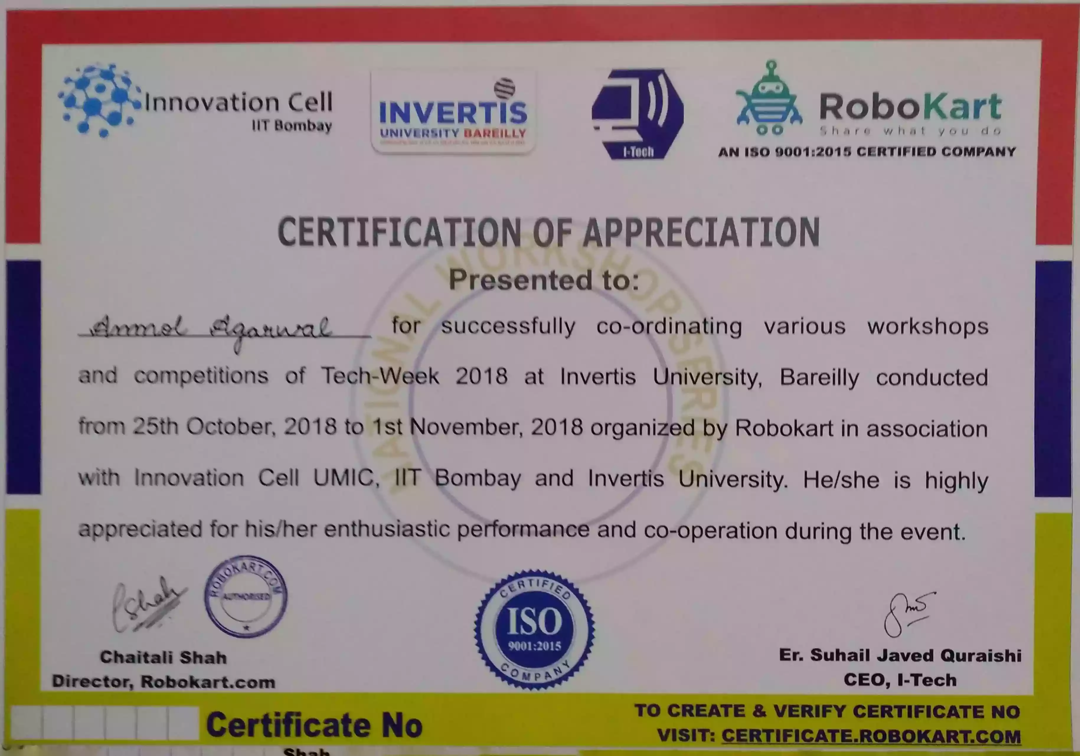 Co-ordinated Tech Week(2.0) - 2018, Invertis University, Bareilly