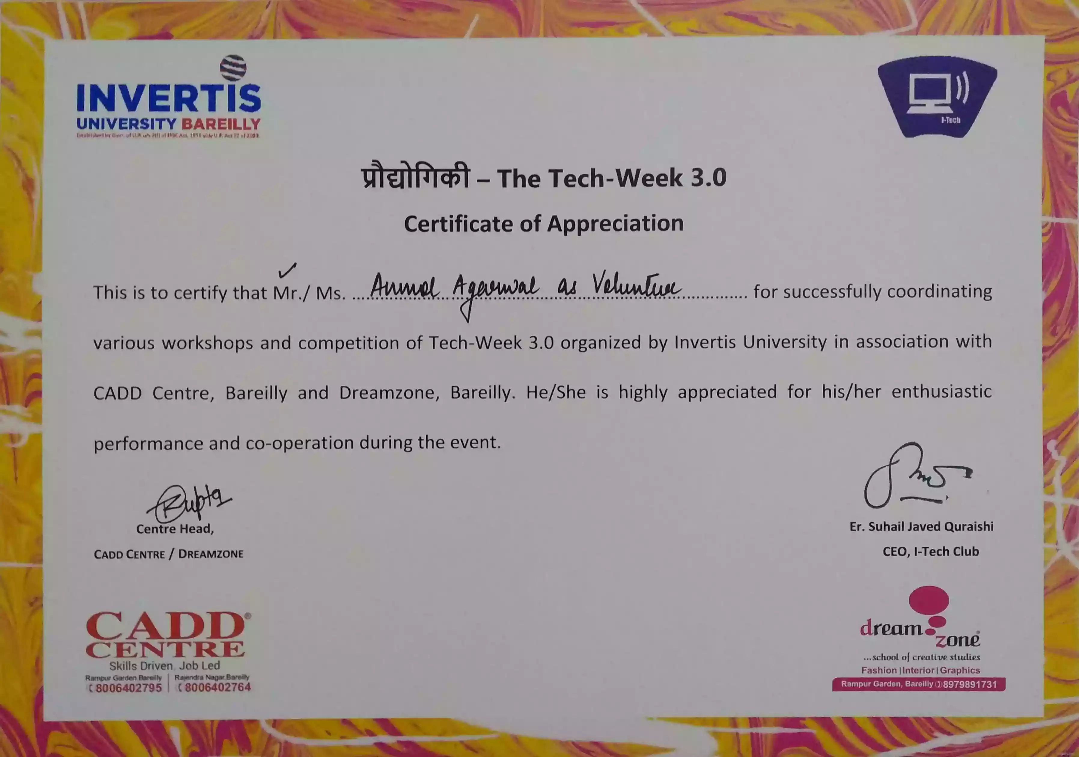 Co-ordinated Tech Week(3.0) - 2019, Invertis University, Bareilly